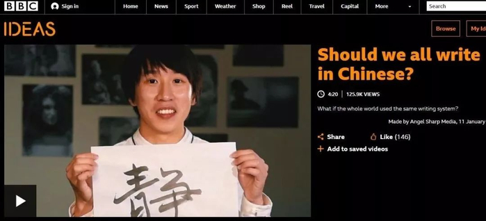 但最近,BBCIdeas 发布了一个名为《全世界的人都应该统一使用汉语写作吗?》(Should we all write in Chinese)的短视频,并在视频中指出,汉语很适合成为世界通用书写语言。