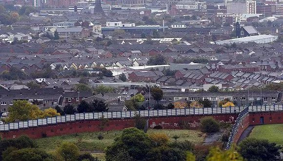 2014年10月3日,北爱尔兰贝尔法斯特,隔开天主教和新教社区的“和平墙”。来源:视觉中国