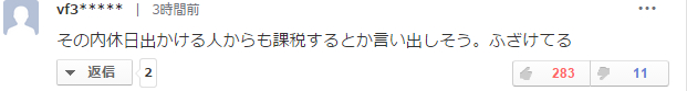 感觉都要说出即使休息日出门的人也要被课税,开什么玩笑