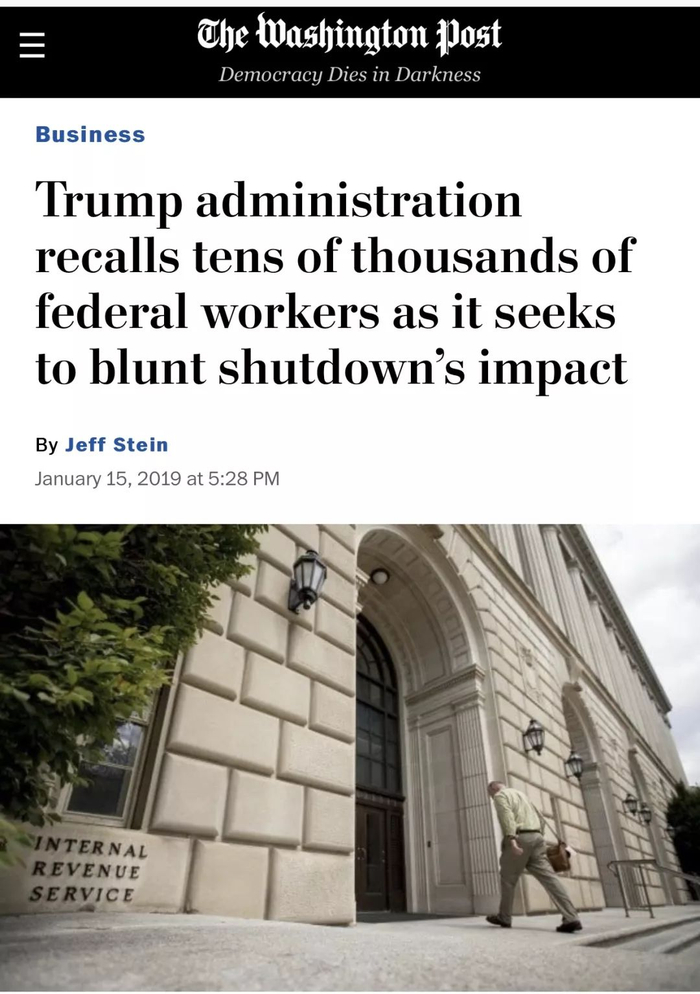 虽然这么多公务员没有领到工资,然而,特朗普却仍然要求成千上万的公务员坚守岗位,那些回家跷班的也给叫回来干活;没办法,看来,在美国,公务员是弱势群体。