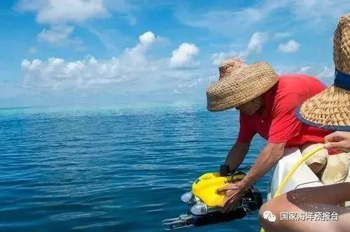 2015年8月至2016年6月,西沙航迹研究所通过使用声呐旁扫设备、电子计数铅垂、深海海流仪、深海水质分析仪、水下机器人、水下摄影摄像设备等器材装备,采用科学器材探测与人工潜水观察测量相结合的方法,成功探明蓝洞深度和基本形态。中国工程院院士孟伟为组长的专家组认定该探查结果可信。图为三沙市航迹珊瑚礁保护研究所的工作人员将水下机器人放入“三沙永乐龙洞”进行现场探查。