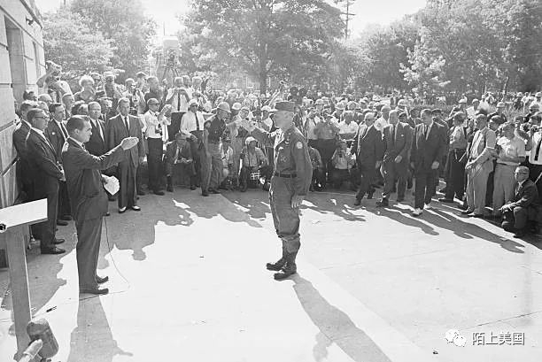 1963年, 阿拉巴马州的国民护卫军司令亨利·格雷厄姆接到肯尼迪的总统令,护送两名黑人学生进入阿拉巴马大学。而以守卫在大学校门口堵住黑人学生而出名的当时的州长乔治·华莱士,则将自己种族分子的形象定格在历史的瞬间。