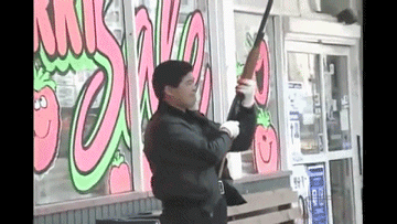 △最经典的莫过于这段视频,堪称英雄本色现实版。