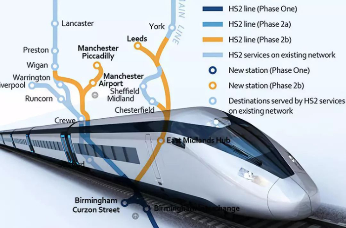 根据原本的计划,连接伦敦和伯明翰的第一阶段铁路将于2026年12月开通,第二期将会扩展到克鲁、曼彻斯特和利兹。