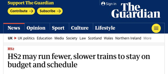 《卫报》:HS2可能会运行更少、速度更慢的列车,以保持预算和时间安排!