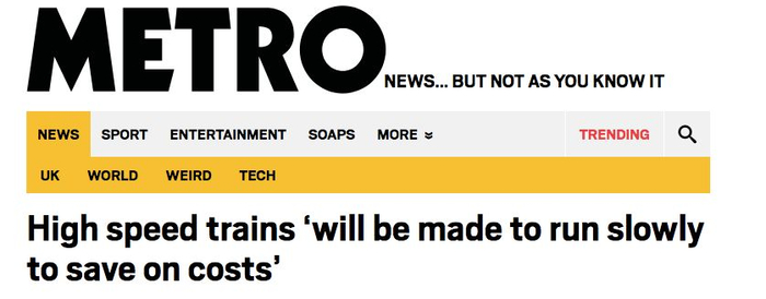 《地铁报》:高铁“将放慢速度以节省成本”!
