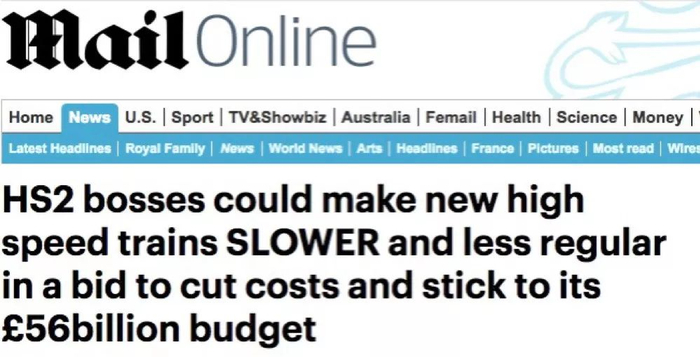 《每日邮报》:HS2老大恐让新高速列车降低速度和减少班次,以削减成本,坚持560亿英镑的预算!
