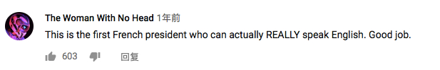但等你看完youtube视频下面成百上千条彩虹屁评论你就不这么想了:网友们一致表示,马克龙的英文说的比川普好多了。
