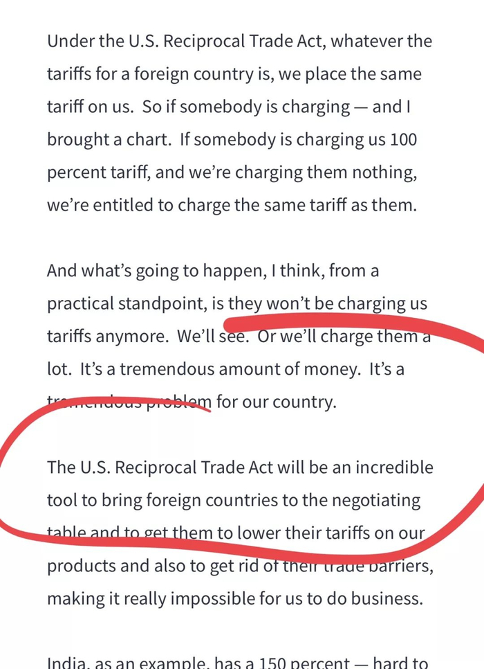 他在声明中说,世界贸易组织的“最惠国”规则导致美国长期处于不公平的贸易地位,伤害了美国的工人和企业,而“国会和总统目前都没有适当的工具迫使外国降低关税和非关税壁垒。因此,现在是制定新的美国对等贸易法案的时候了”。