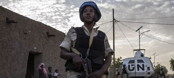 一名维和人员正在马里城市加奥(Gao)的街道上巡逻