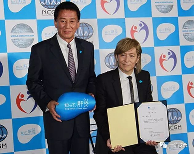 2016年4月,被日本厚生劳动省任命为“肝炎対策大使”的小室哲哉(右)