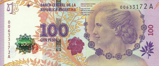 印在钞票上的贝隆夫人头像