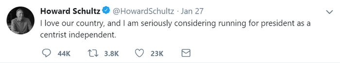 舒尔茨预参加竞选,开撕的似乎不止是川普和舒尔茨本人了,又有一部吃瓜大戏要上演的样子……