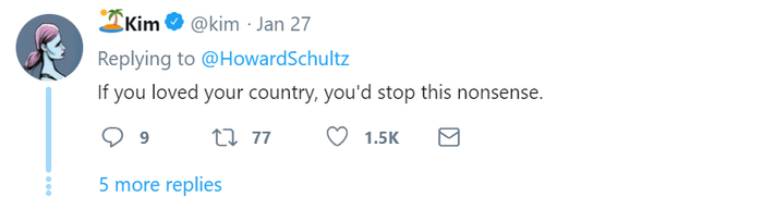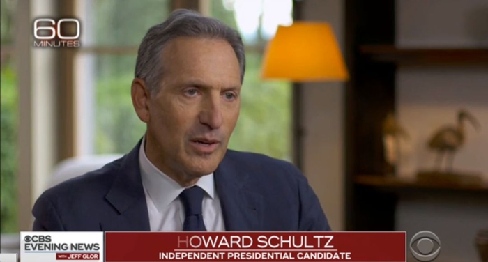 “霍华德·舒尔茨没那个胆子去竞选总统!看看他昨晚在《60分钟》上的表现,我十分同意他自己说的,他不是个‘聪明人’。