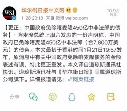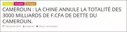 所以,《华尔街日报》中文网那篇发布于1月21日的“免除52亿美元债务”的报道,从源头上来说,是被喀麦隆媒体给坑了。