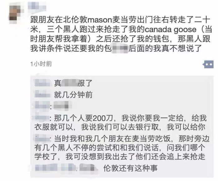 除此之外因为留学生爱穿加拿大鹅,也被盯上了。之前就有读者在后头向我们留言,不管是玩笑还是认真,都令人不寒而栗。