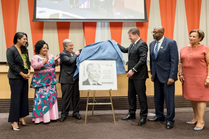 联合国秘书长古特雷斯出席曼德拉百年诞辰纪念邮票的发行仪式
