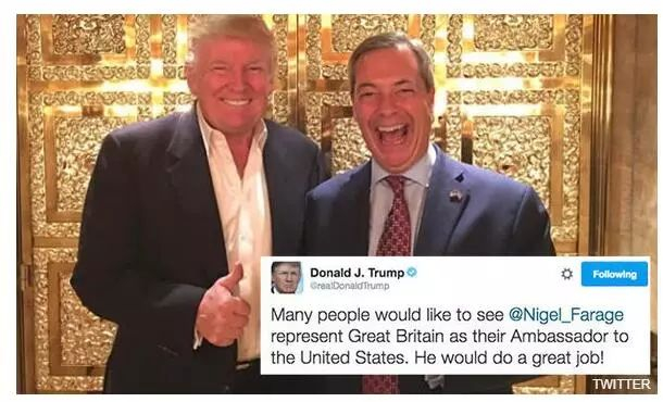但特朗普上任后改变了这一政策。他认为,欧盟的经济规模足以保护不听从美国经济和地缘政治需求的个别欧洲国家。因此,他有意削弱欧盟,甚至试图分裂欧盟。他与英国脱欧势力比如脱欧领袖奈杰尔·法拉奇等人走得很近。法拉奇是特朗普当选总统后会见的第一位英国政治家。特朗普还干预英国政治,公开称赞特雷莎·梅的对手,比如支持英国脱欧的鲍里斯·约翰逊。