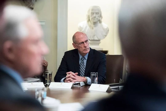 图为美国国家情报总监Daniel Coats在7月18日白宫内阁会议期间听取特朗普总统的讲话。(Jabin Botsford /华盛顿邮报)