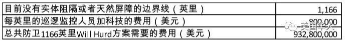 事实上,因为只有1166英里需要布防,因此Will Hurd的方案的费用只需要9亿3280万美元: