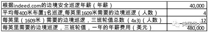 看完以上的计算,感想如何?是花16亿美元筑墙65英里,还是用同样的钱雇佣四万名边境巡逻人员,就可以立刻排出一道人墙呢?