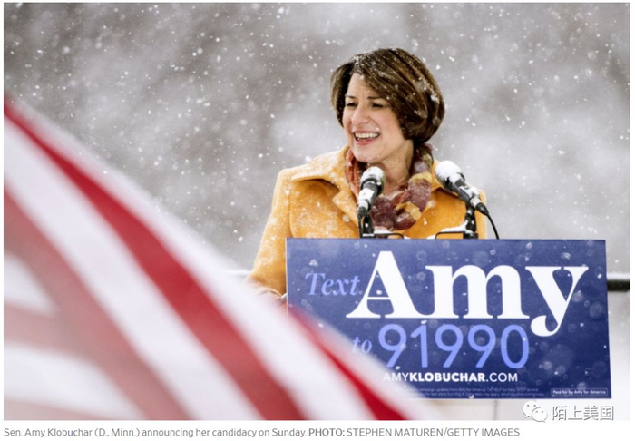 今天周日,明尼苏达州的国会参议员Amy Klobuchar(艾米·克罗勃査),别具特色地在大雪中开启了她2020年的总统竞选之旅。在零下十多度的寒风中,对现场的几百支持者发表了长达半小时的演讲。来的人中,还有81岁的老者。大雪飘在她和听众的头发和夹克上,这个开头,注定了这是一场不平凡的总统竞选之战。