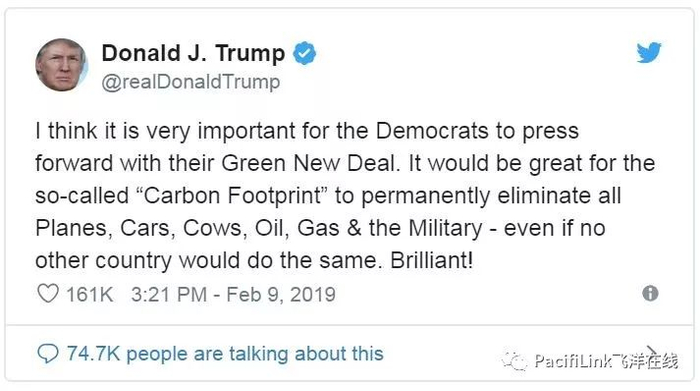 但是不要忘了,绿色新政(Green New Deal)可不是AOC自己博眼球的网红贴,而是民主党在国会正式推出的Resolution,众院和参院同时发布!