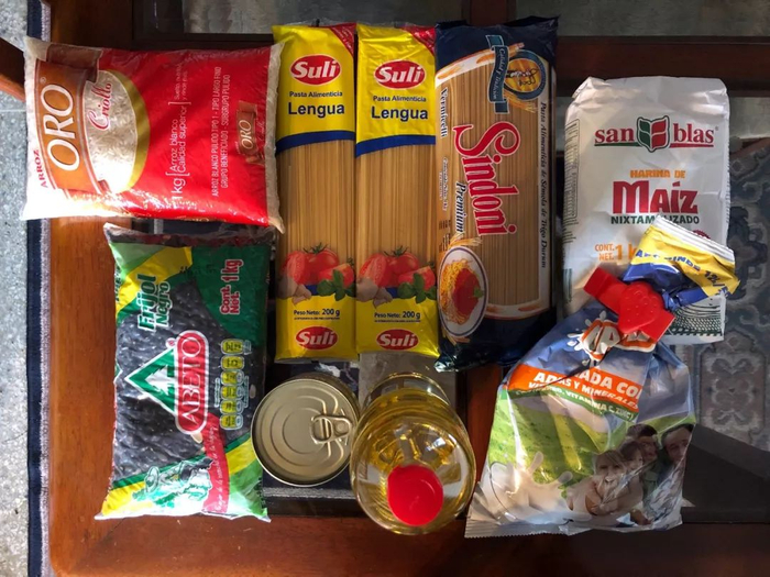 记者看到,不大的纸箱上印着前任总统查韦斯和现任总统马杜罗的人像,里面塞满了大米、黑芸豆、玉米粉、意面、食用油、奶粉、金枪鱼罐头、白糖等。
