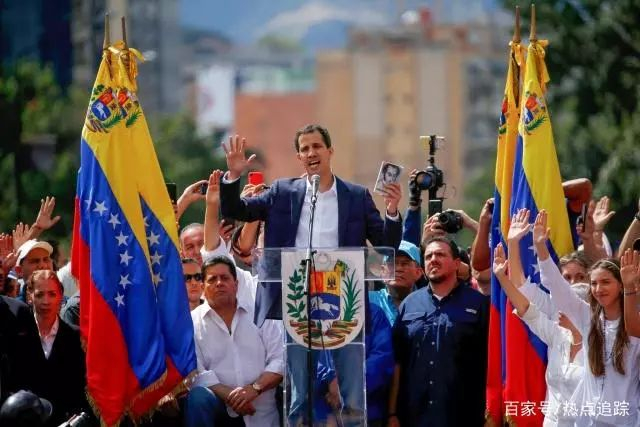 果不其然,短短几个小时之后,爆炸性的新闻从委内瑞拉传出。这位35岁的年轻人,在数千名支持者的簇拥下,在加拉加斯街头公然质疑马杜罗的执政“合法性”,并且一不做二不休,当场“自封总统”。