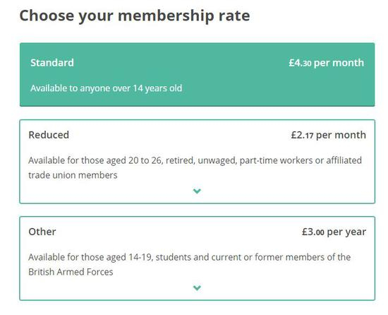 分为三种党员:成年人一般选择标准入党“大礼包”,加入需要交纳25英镑一年的党费。
