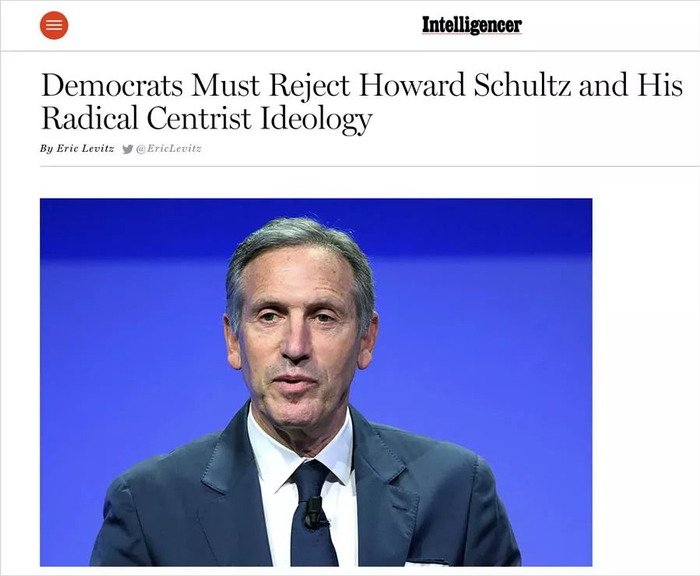 2016年那次总统大选,很多人看好的纽约前市长、亿万富豪布隆伯格,就因为担心自己会分散希拉里的选票而放弃了参选。这一次,他也公开严厉地批评了舒尔茨。