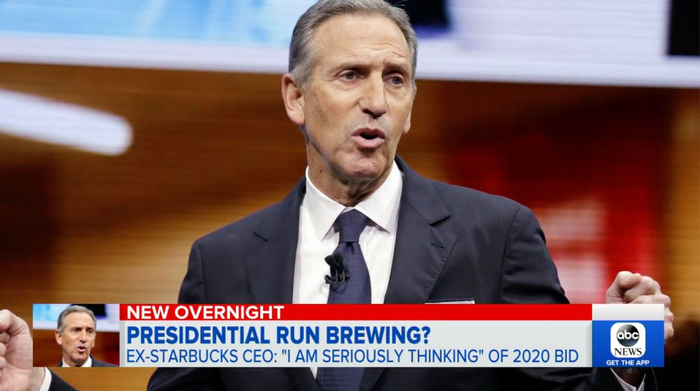 1月底,星巴克前CEO霍华德·舒尔茨(Howard Schultz)在接受媒体采访时表示,自己正在“非常严肃地”考虑参选2020年美国总统。