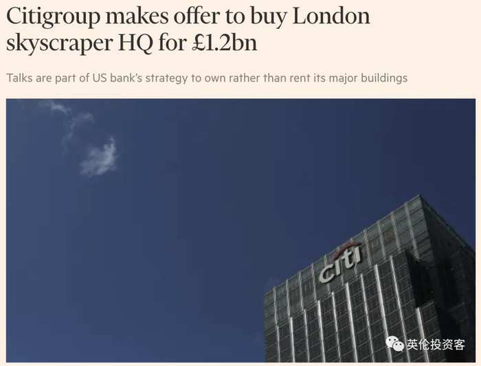 花旗伦敦总部大楼此前由中东投资公司AGC equity Partners持有,花旗只是租用并冠名该楼。
