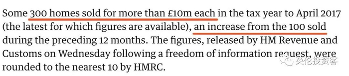 英国税务局HMRC数据也显示市场正在升温,最近一个财年,英国价值超过一千万英镑的豪宅的交易量达到300笔(大部分位于伦敦),是脱欧公投前的3倍。