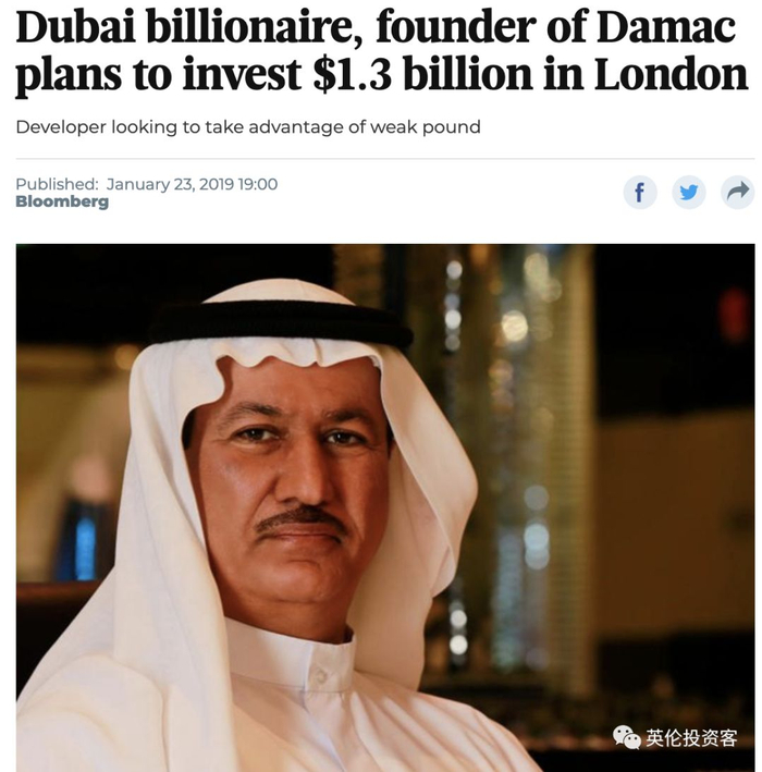 2019年1月23日,迪拜亿万富豪、开发商DAMAC主席Hussain Sajwani接受彭博采访时表示,无论英国脱欧结果如何,他仍计划对伦敦投资10亿英镑。