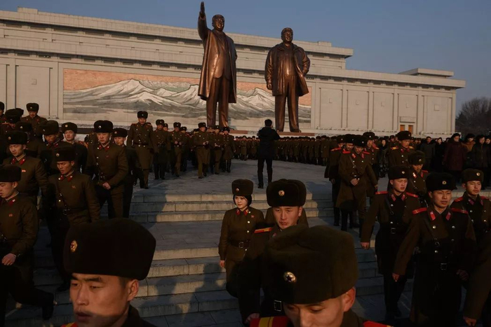 朝鲜士兵本月在平壤庆祝现任领导人的父亲金正日的诞辰纪念日。 ED JONES/AGENCE FRANCE-PRESSE — GETTY IMAGES