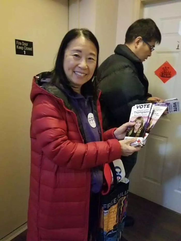 此次汤普森参选,有众多华裔义工助选,甚至几代人齐登场,从街头宣传到走家串户,为了宣传极右翼党纲,华人可谓是不遗余力,另一份加拿大华人媒体《加拿大地产头条》也承认,华裔选民是汤普森的主要支持者:“……在之前举办辩论会的时候,我看到不少华人都举着支持汤普森的牌子,而其他政党牌子几乎都看不到,这是一个好的开始。”