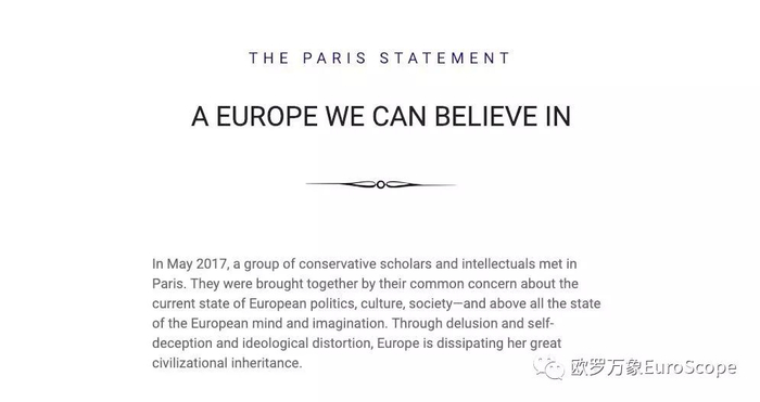 保守派在公开信中认为,如今的欧盟以“多元一体”的名义剥夺各个国家的主权。他们认为今天的欧盟是一个“金钱与律法的帝国,带有一种虚假的普世主义滥情”。他们既而主张欧洲的历史上存在过的“多元一体”的帝国——如罗马帝国,最后都被历史淘汰了。历史最终让民族国家的模式在欧洲获得了胜利,所以“民族国家因此成为了欧洲文明的标志”。对于欧洲的未来,他们主张在基督教的基础上,以独立的民族国家为基础实现“共善”。“我们并不谋求帝国式的强加于人的大一统”。