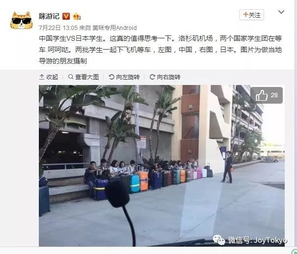 谈及中国人以及中国学生,人们惯有的认知便是素质低、教育差,近几年中国的经济快速发展,国民收入也大大提高,相对应的便是海外旅游人数的增加。学生组团出国也越来越多,而学生是比较受关注的群体,通过孩子们的一举一动来反映他们所受的家庭以及学校教育,咪游记微博里说的大致意思就是中国学生在公共场合表现出来的行为没有日本学生那么有教养。“呵呵哒”显示出的是强烈的民族自卑感,
