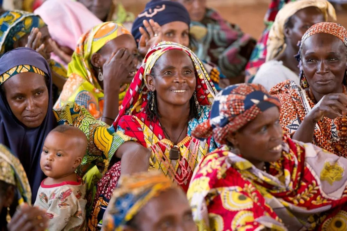 喀麦隆Ngam难民营中的妇女参加由联合国妇女署组织的社区会议