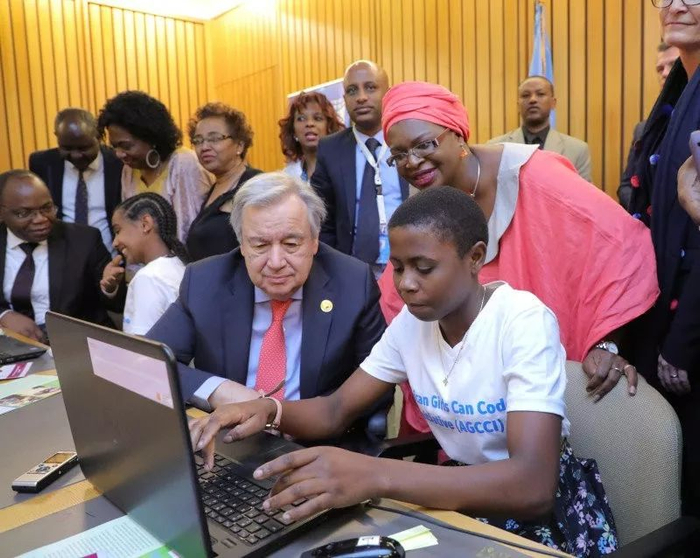 古特雷斯秘书长在埃塞俄比亚参加“非洲女孩能编码”小组活动