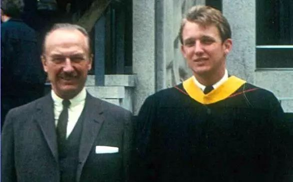 1968年,特朗普从沃顿商学院毕业,图为他和其父亲