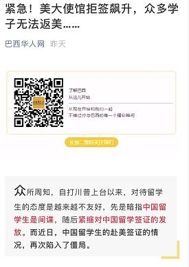 文章还称,统计受影响的留学生及访问学者,签证被Check的就有100人,但仍有数额庞大的人数还没有被统计到。联系了美国大使馆,却得到千篇一律的回复:耐心等待结果。