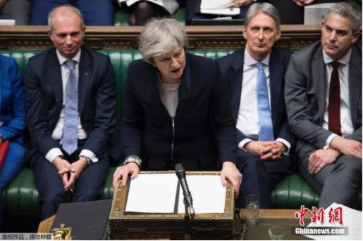 当地时间1月15日晚,英国议会下院以432票对202票,投票否决了此前英国政府与欧盟达成的脱欧协议。图为特蕾莎·梅在议会讲话。