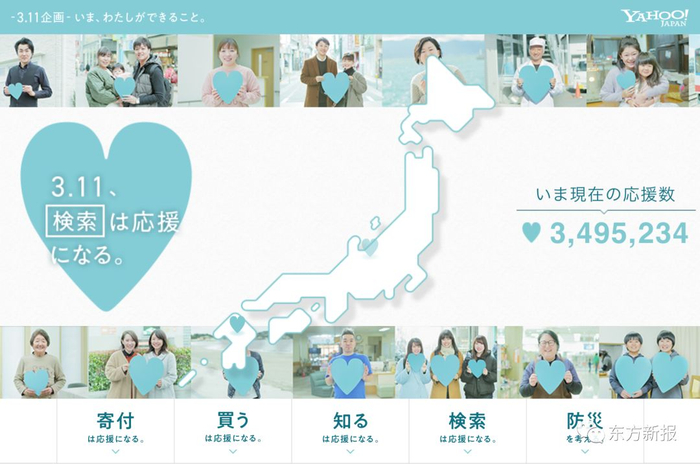 雅虎的《3・11,用搜索支援灾区》活动页面