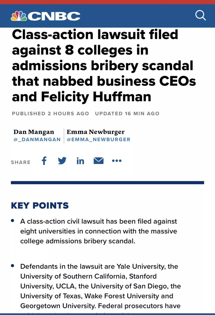 两名斯坦福学生发起集体诉讼, 将涉案八大名校告上法庭。。。。。