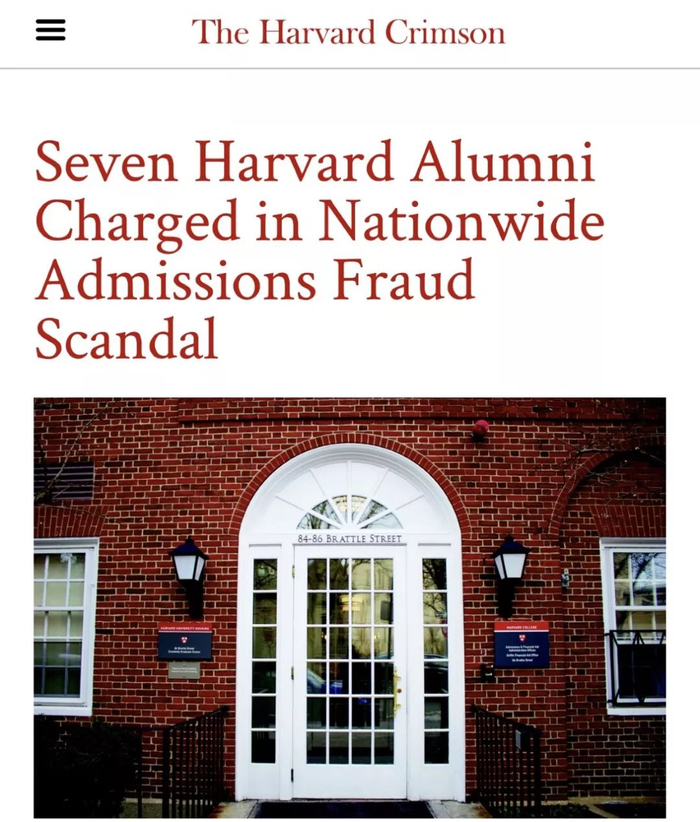 作为所谓的作弊行为的一部分,这些富裕的父母向一家大学咨询公司支付了数百万美元,以贿赂大学体育教练将他们的孩子包装为是体育新秀,从而大大增加了未来学生的入学机会。尽管其他涉案大学(包括耶鲁大学和斯坦福大学)的体育主管和教练都面临参与该计划的指控,但哈佛大学的工作人员似乎没有与现在被起诉的父母沟通。哈佛本科大学毕业生Gregory O。 Colburn ‘79和Stephen P。 Semprevivo ’88;商学院校友Douglas M。 Hodge,Augustin F。 C。 Huneeus和John B。 Wilson; 法学院的校友Elisabeth Kimmel是33名被告父母中的6名,他们被指控利用贿赂来确保顶级大学为孩子提供庇护。