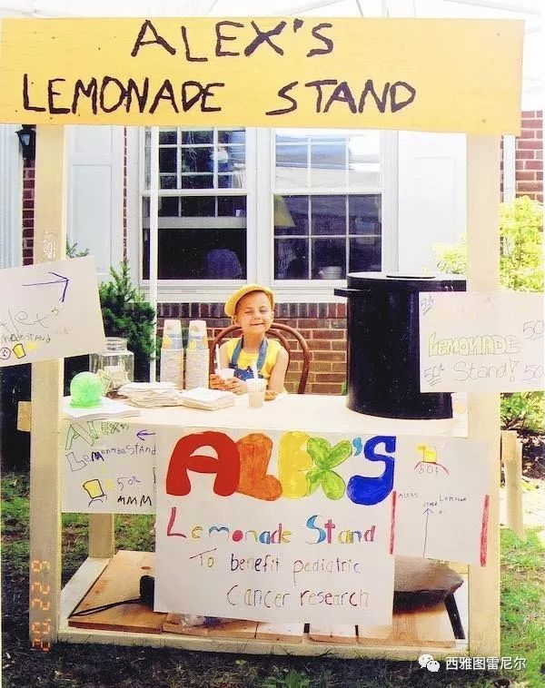 Alex在1岁生日前不久被诊断神经母细胞瘤(一种罕见的儿童癌症),自此以后,一直与癌症抗争。4岁那年,她在接受了干细胞移植手术后决定要用柠檬水铺子的方式为其他癌症患儿筹集资金。在哥哥的帮助下,Alex在家里的前院设立了她的第一个柠檬水铺,筹集了2000美金。