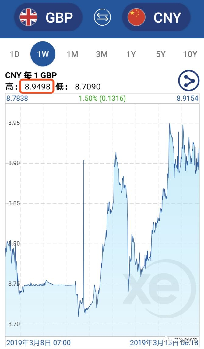 英镑兑人民币同样震荡上涨,目前维持在8.9左右。