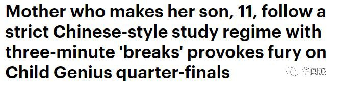 ▲《每日邮报》:《11岁男孩的母亲,对她儿子实行只有三分钟休息“中国式培训”下晋级<天才儿童>四分之一决赛,引起网友“炮轰”》